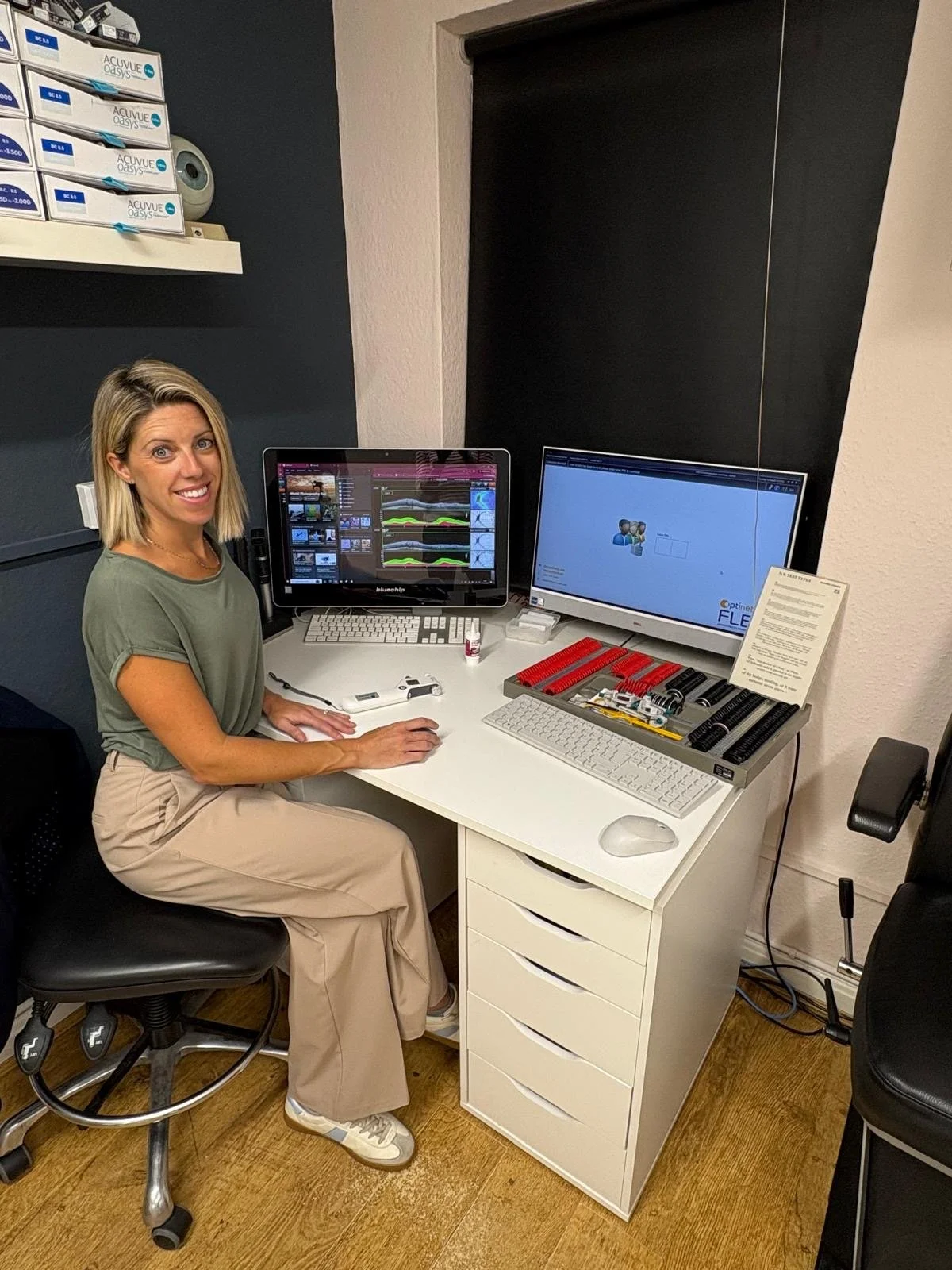 Ortho-K is a very different method of wearing contact lenses. You wear a rigid, gas permeable lens overnight (like a retainer for our teeth), this gently re-shapes the front surface of the eye leaving the wearer glasses and contact lens free for the day. This does however have an adaptation period, getting used to the lenses and becoming glasses free can take up to a month but once there you are glasses and contact lens free for the day and have no limitations on things like swimming.